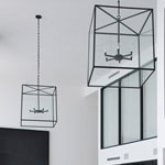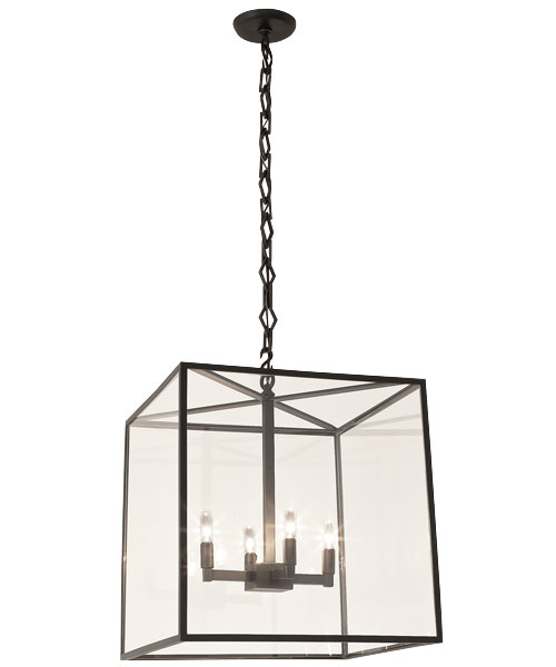 22" H x 22" W Textured black finish Supplied with 3' diamond chain 4 25W mini showcase bulbs
