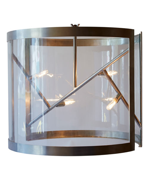 20" H x 24" D Brushed nickel finish Supplied with 3' French chain 4 75W showcase bulbs